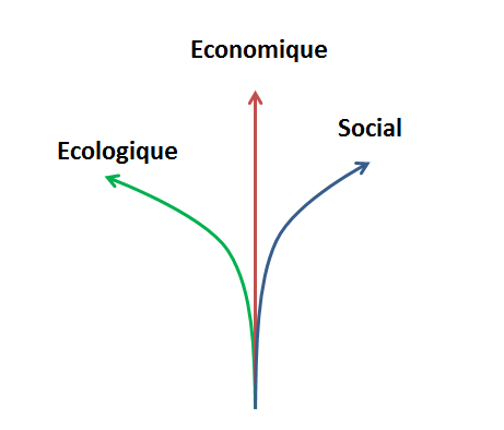 - Prendre une décision en faveur du social peut se faire au détriment de l’économique (baisse de la compétitivité) ou de l’écologique (consommation).